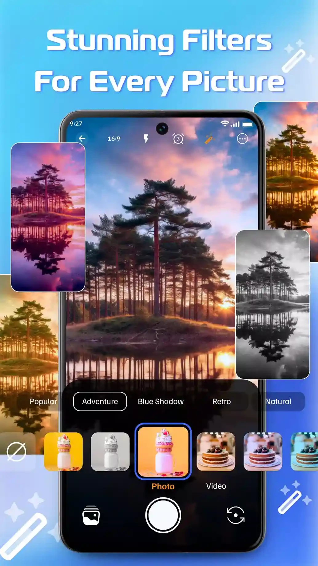 Gerçek zamanlı filtrelerin bolluğu, fotoğraflarınızın ve videolarınızın sanatsal havasını geliştirmeye yardımcı olur. İstediğiniz her şeyi yeni yollarla elde etmenizi sağlar ve yeni yöntemler sunarak görsel hikaye anlatımıyla yaratıcılığınızı ifade etmenize olanak tanır.